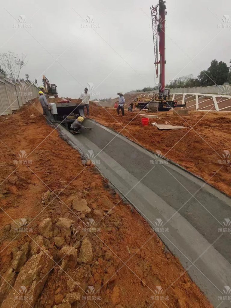 中鐵集團的分包隊在我公司購買的梯形水溝滑模機,在廣東省陽江市陽西縣正如火似荼的施工。這是一個上口是1.6米的梯形邊溝,一個標準的高鐵排水溝尺寸。因為現場不能自辦料,而且中鐵單位都有自己的攪拌站??蛻暨x了牽引型水溝滑模機。