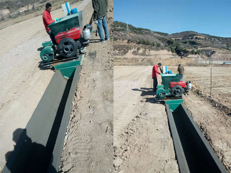 陜西延安客戶主要是做農渠輸水工程,客戶從事這個行業已經很多年了。以前修建渠道都是使用人工修渠。不僅是修渠時間慢,而且人工特別不好找,給的工資低了沒人干,給的工資高了自己就要賠錢,而且工人有時候偷工減料造成渠道質量差用不了多久就壞了。今年客戶了解到有一種全自動混凝土現澆渠道成型機,一臺機器一天可以做500米渠道。而且整個機器的操作最多需要3個人。于是客戶從河南豫信致誠機械設備有限公司訂購了一臺U型水渠機。